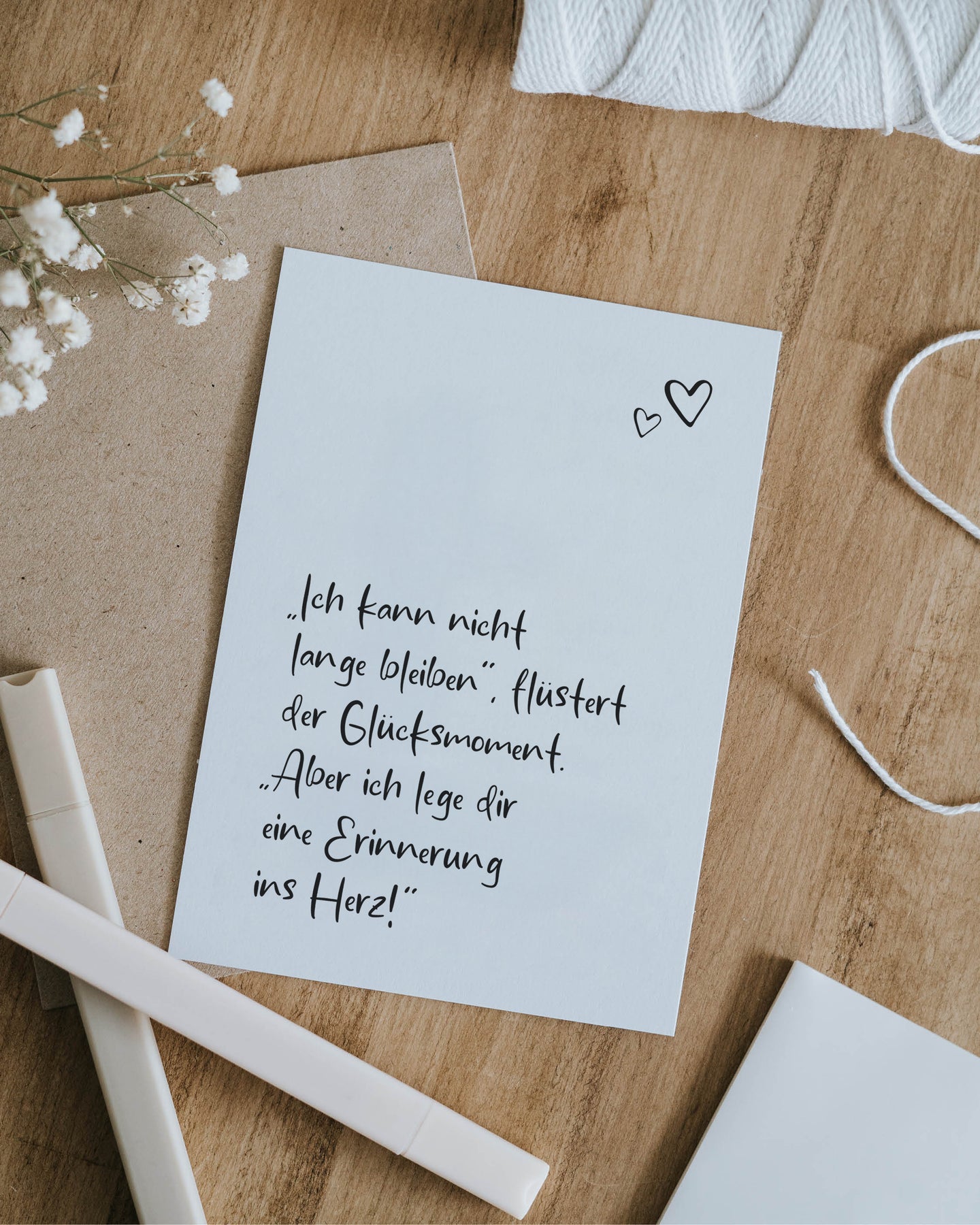 Schlichte, hochwertige Postkarte mit Spruch „Erinnerung für dein Herz“ – perfekt zum Verschenken an besondere Frauen.