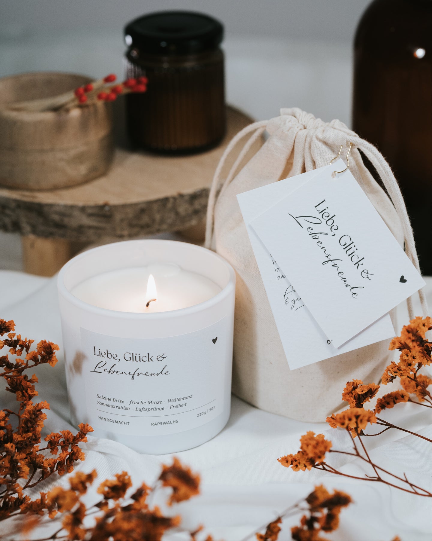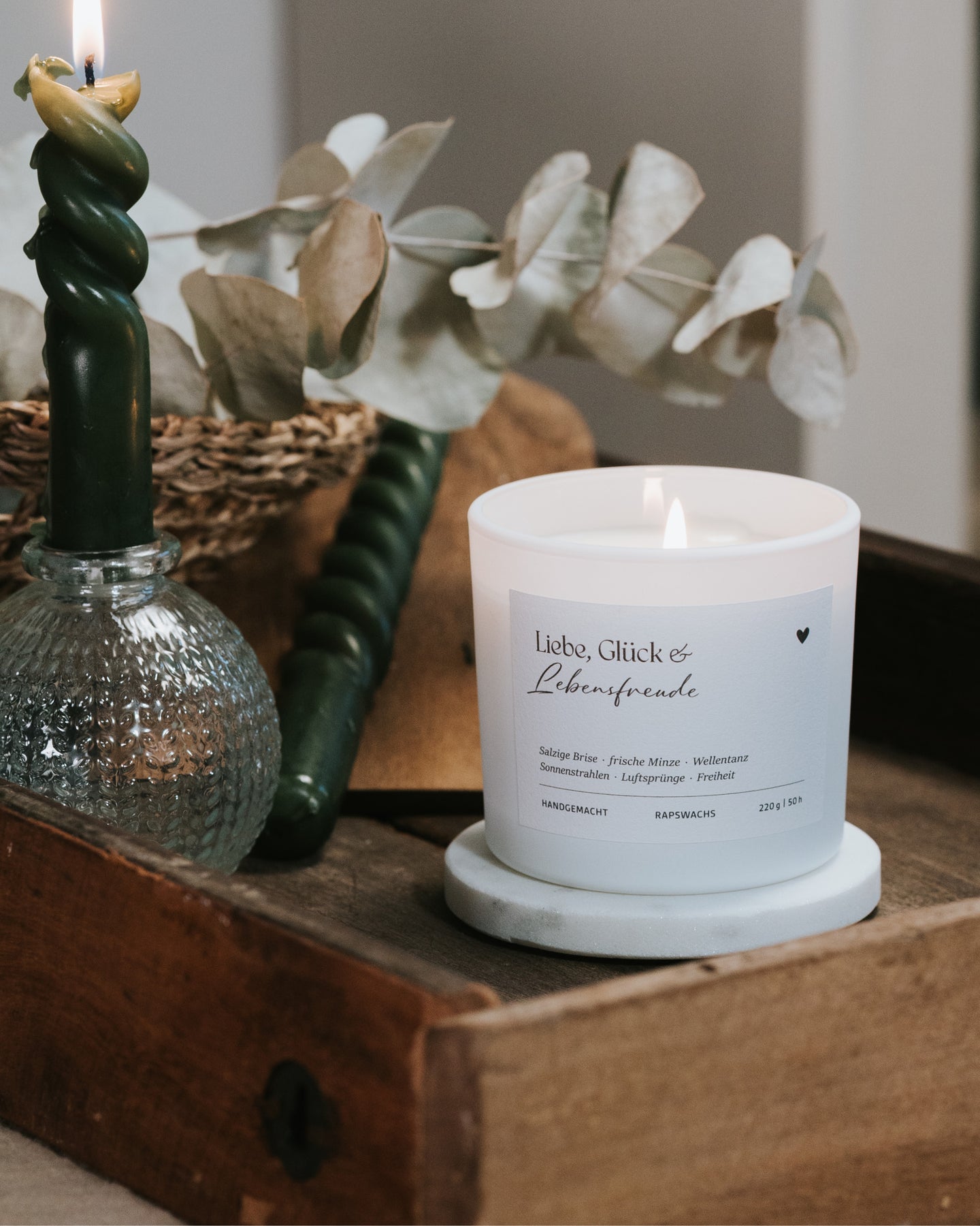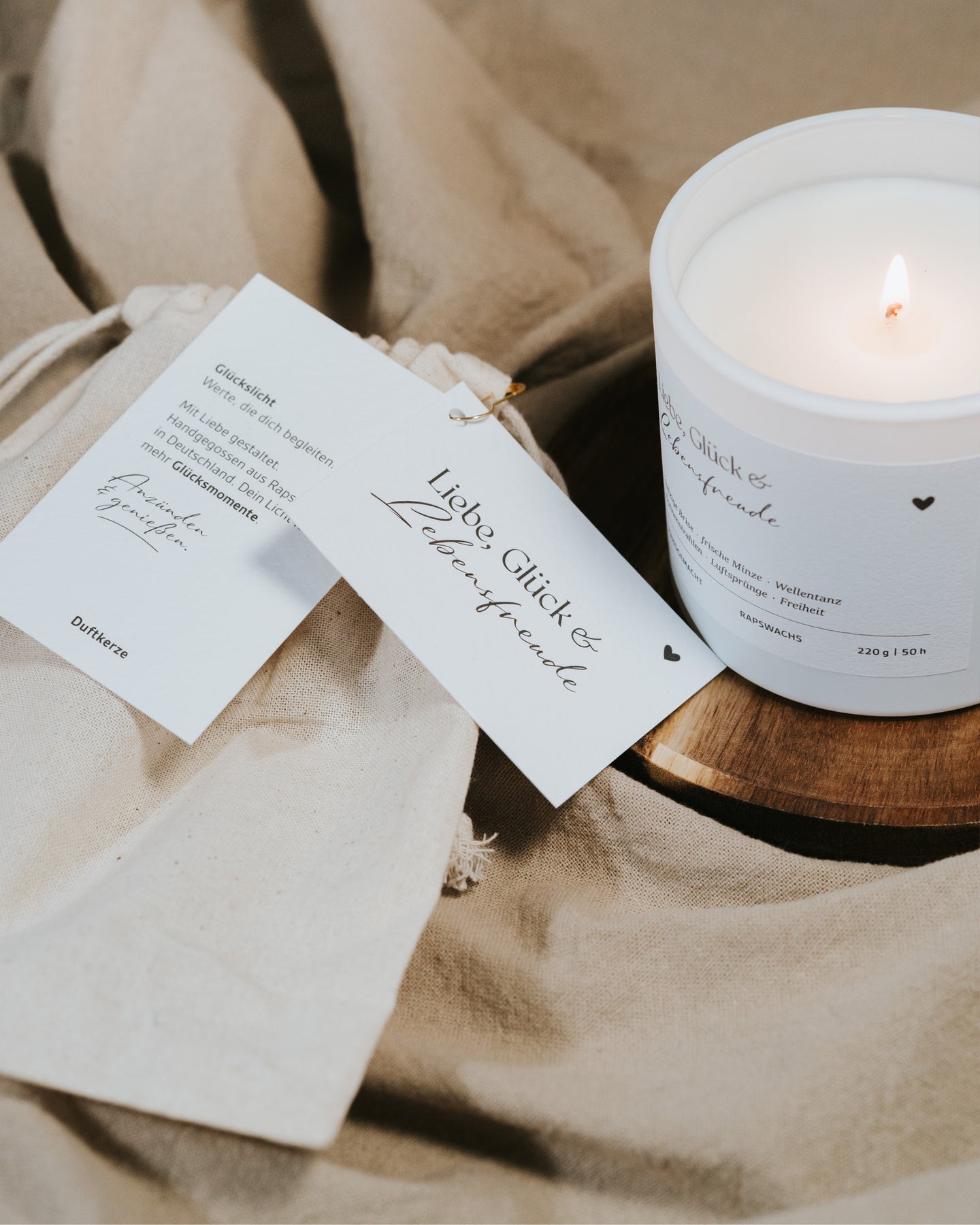 Liebe, Glück und Lebensfreude · Duftkerze