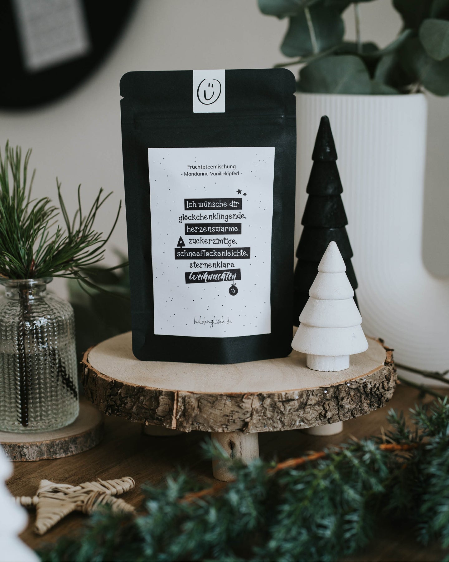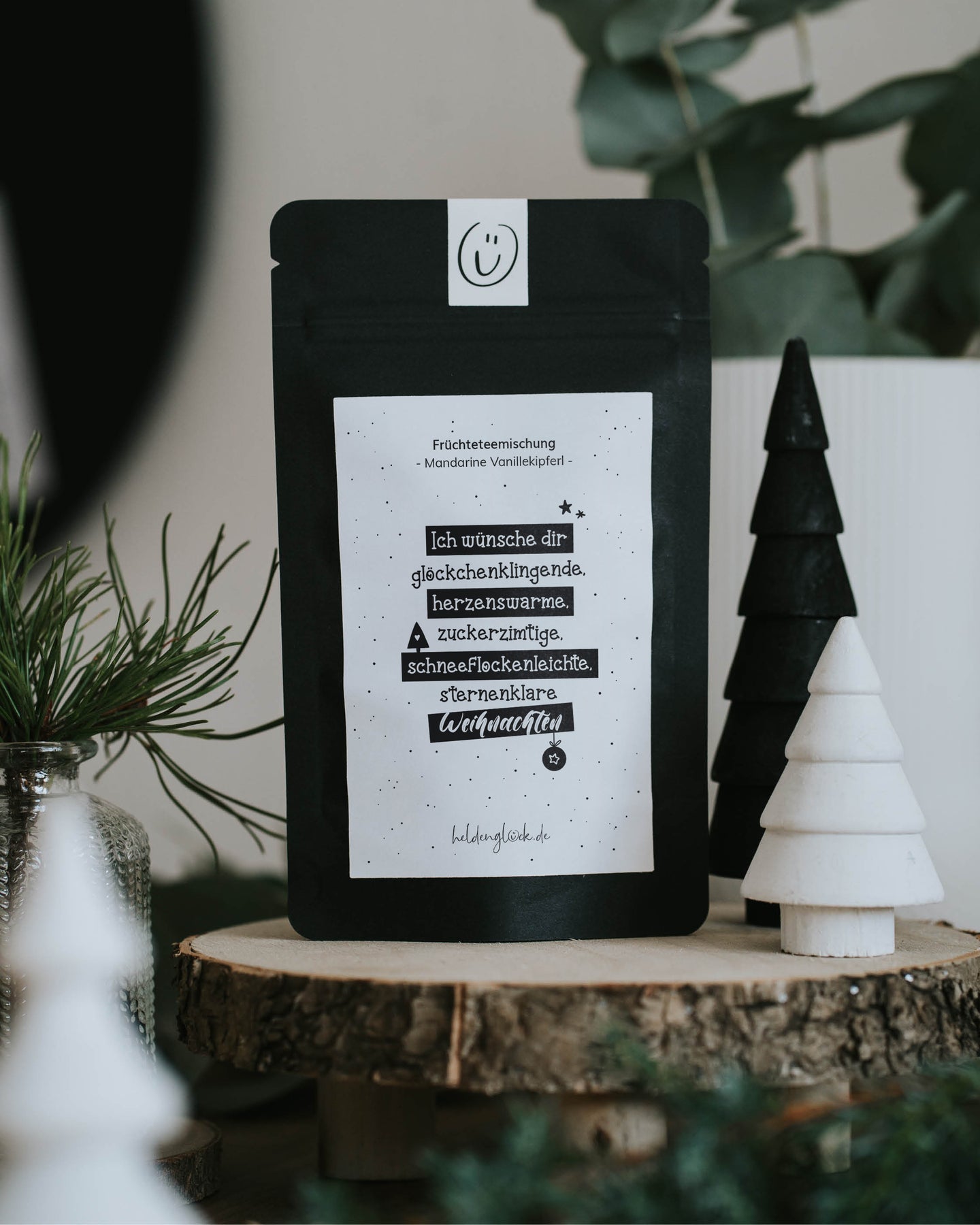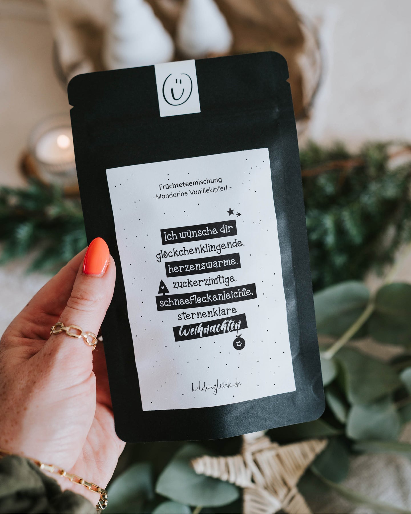 Stell dir vor, du öffnest diesen Tee und sofort duftet es nach Mandarine, Vanille und einem Hauch Geborgenheit. Der Spruch auf der Verpackung wünscht dir glöckchenklingende, herzenswarme, zuckerzimtige Weihnachten – und genau so schmeckt auch dieser Tee. Unsere Früchteteemischung „Mandarine Vanillekipferl“ bringt den Weihnachtsduft direkt in deine Tasse und verwandelt kalte Tage in kuschelige Wohlfühlmomente. Perfekt als Mitbringsel, Wichtelgeschenk oder kleine Aufmerksamkeit im Advent. Ein echter Lieblingsklassiker unserer Heldenglück-Community – jedes Jahr heiß ersehnt.