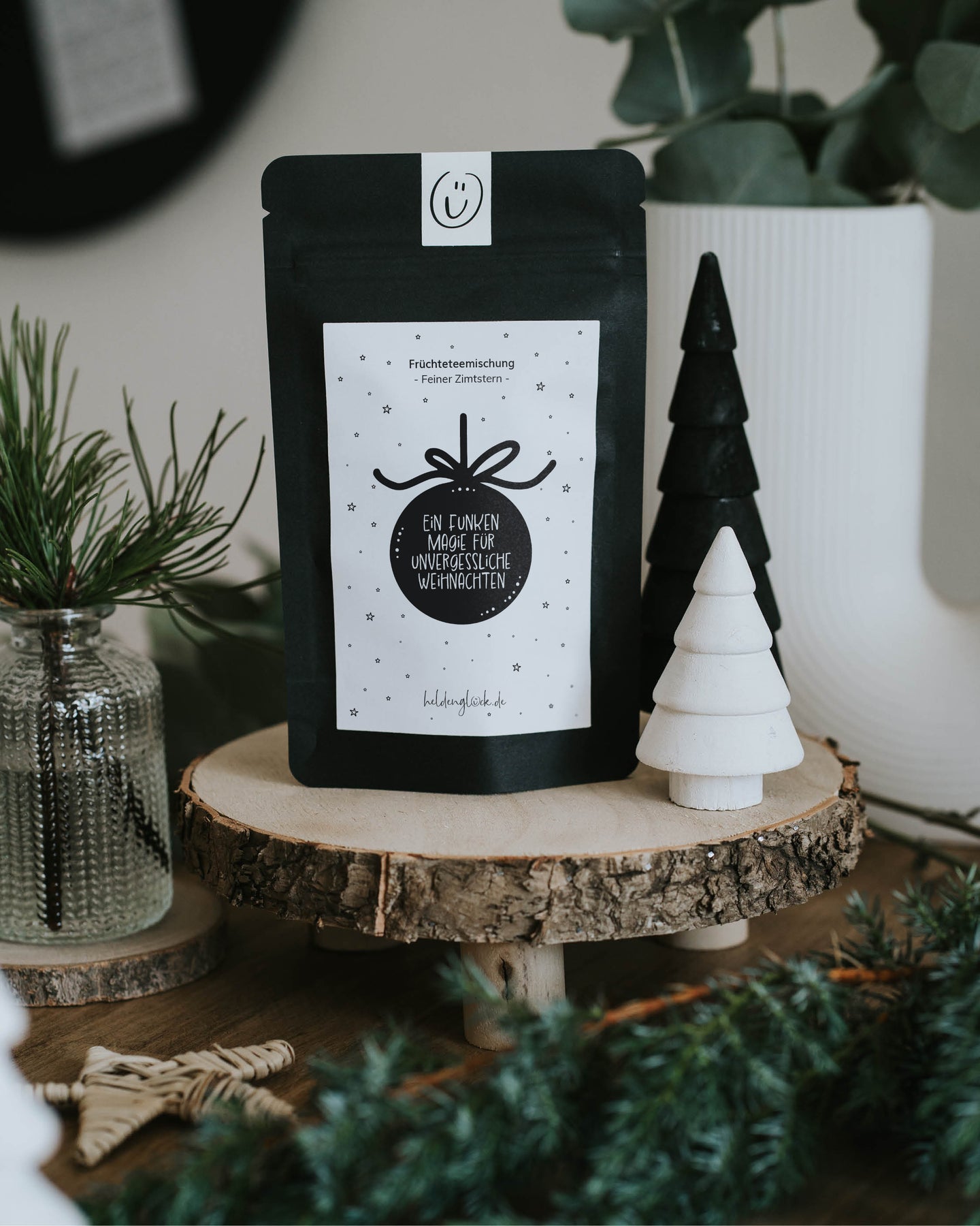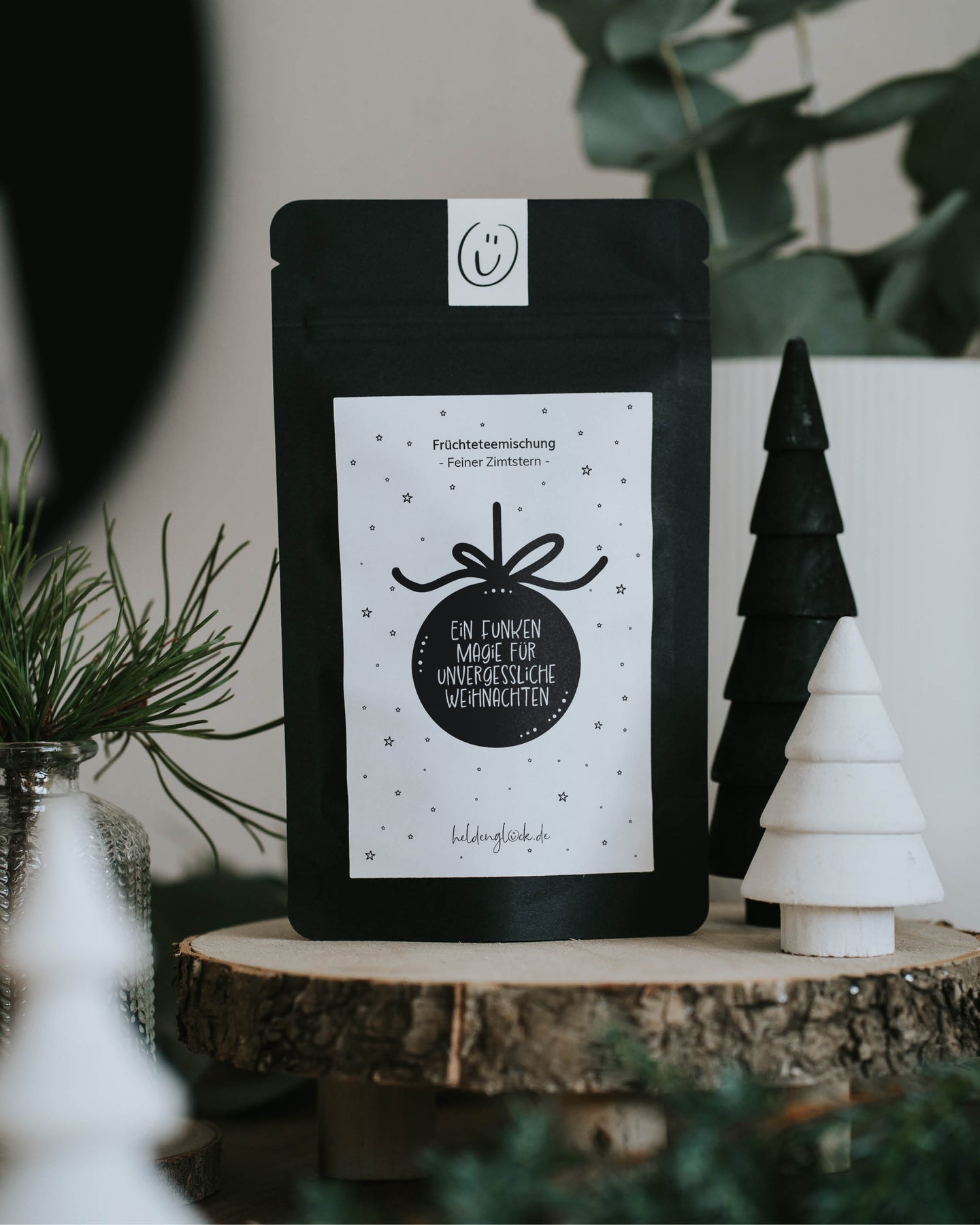 Kräutertee „Feiner Zimtstern“ mit Weihnachtsbotschaft auf nachhaltiger Verpackung