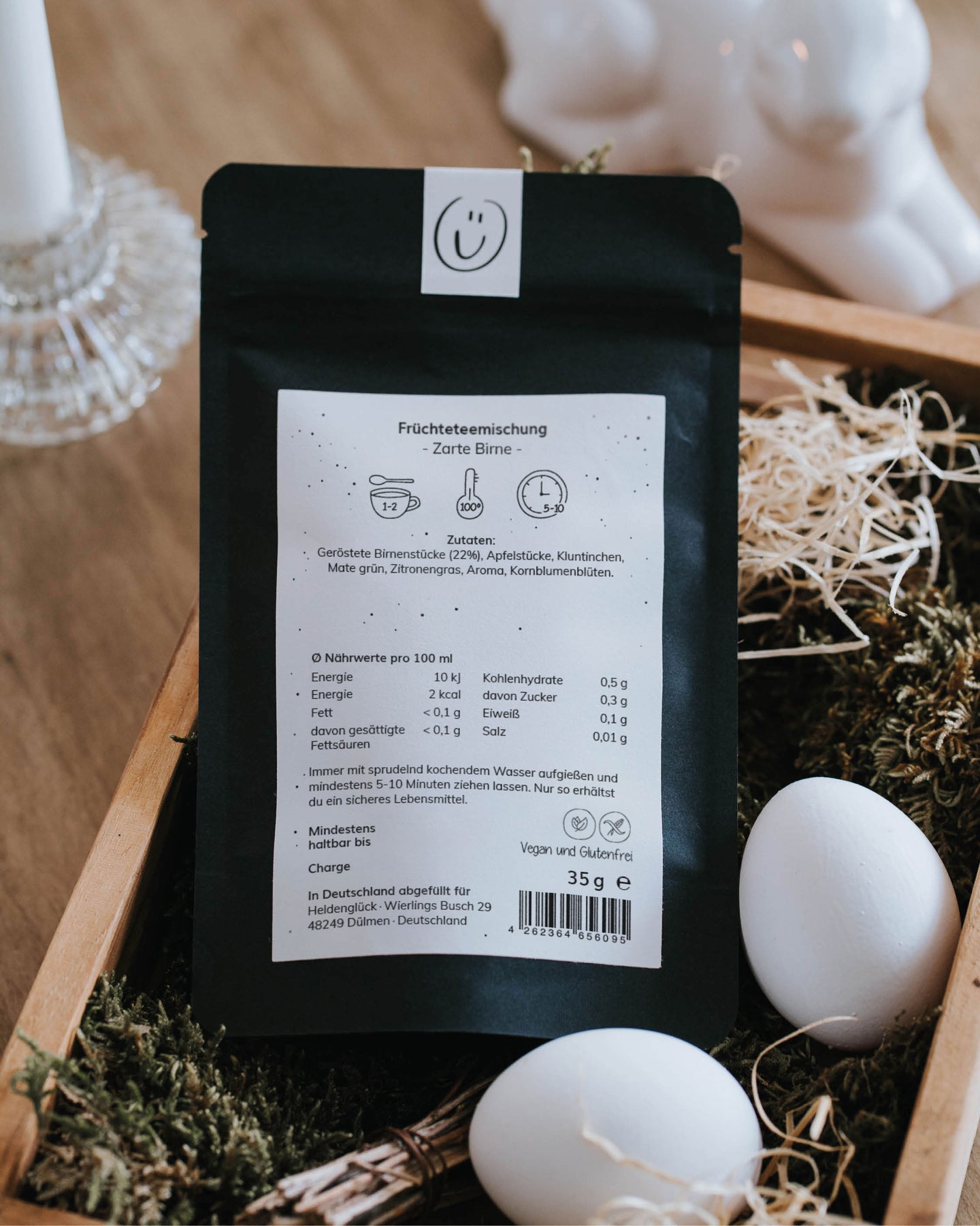 Dieser Früchtetee ist für alle Momente, in denen du Frühlingsgefühle und positive Energie verschenken möchtest. Ob als Geschenkidee zu Ostern, als liebevolles Mitbringsel oder als kleine Aufmerksamkeit zwischendurch – er bringt Wärme, den Geschmack von reifen Birnen und eine Botschaft voller Licht in den Alltag. Viele unserer Kund:innen verschenken ihn als besondere Aufmerksamkeit für Herzensmenschen, weil er zeigt: Ich wünsche dir nur das Beste. Mit seinem minimalistischen Design ist er ein perfektes nachhaltiges Geschenk für Frauen, die Wert auf Qualität und Ästhetik legen.