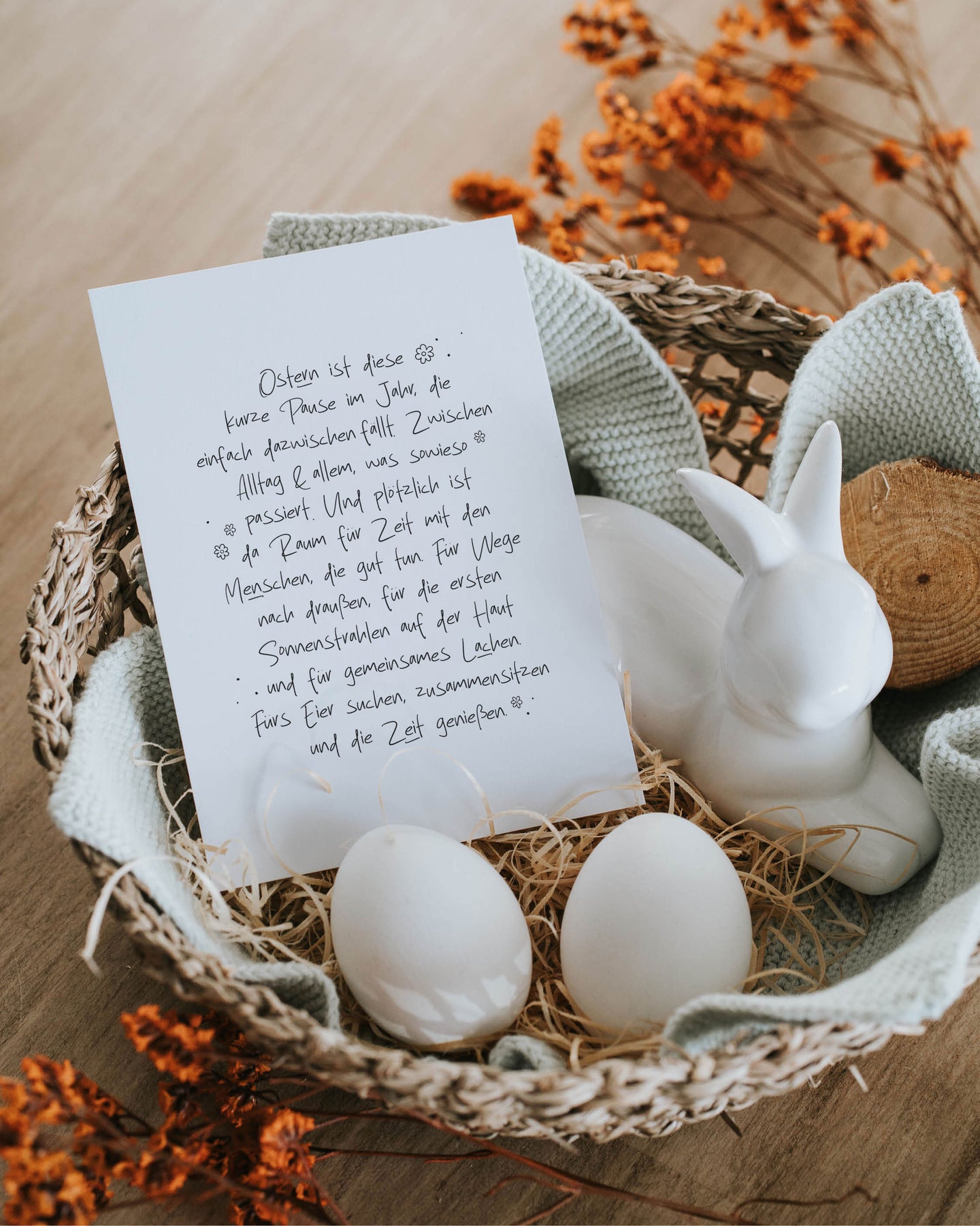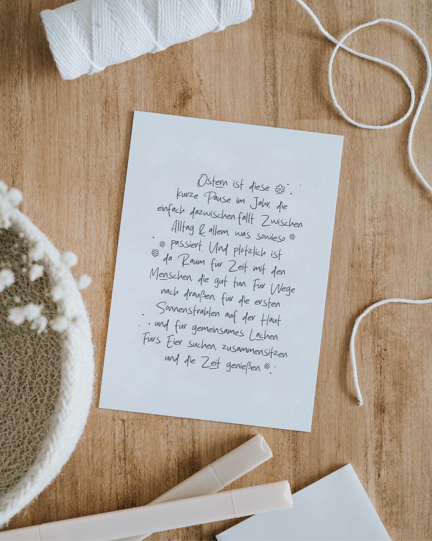 Ostern ist diese wertvolle, kurze Pause im Jahr, die einfach mal dazwischenfällt. Unsere Postkarte "Osterpause" ist für alle nachhaltigen Geschenke für Frauen die erste Wahl, um dem täglichen Chaos kurz zu entfliehen.