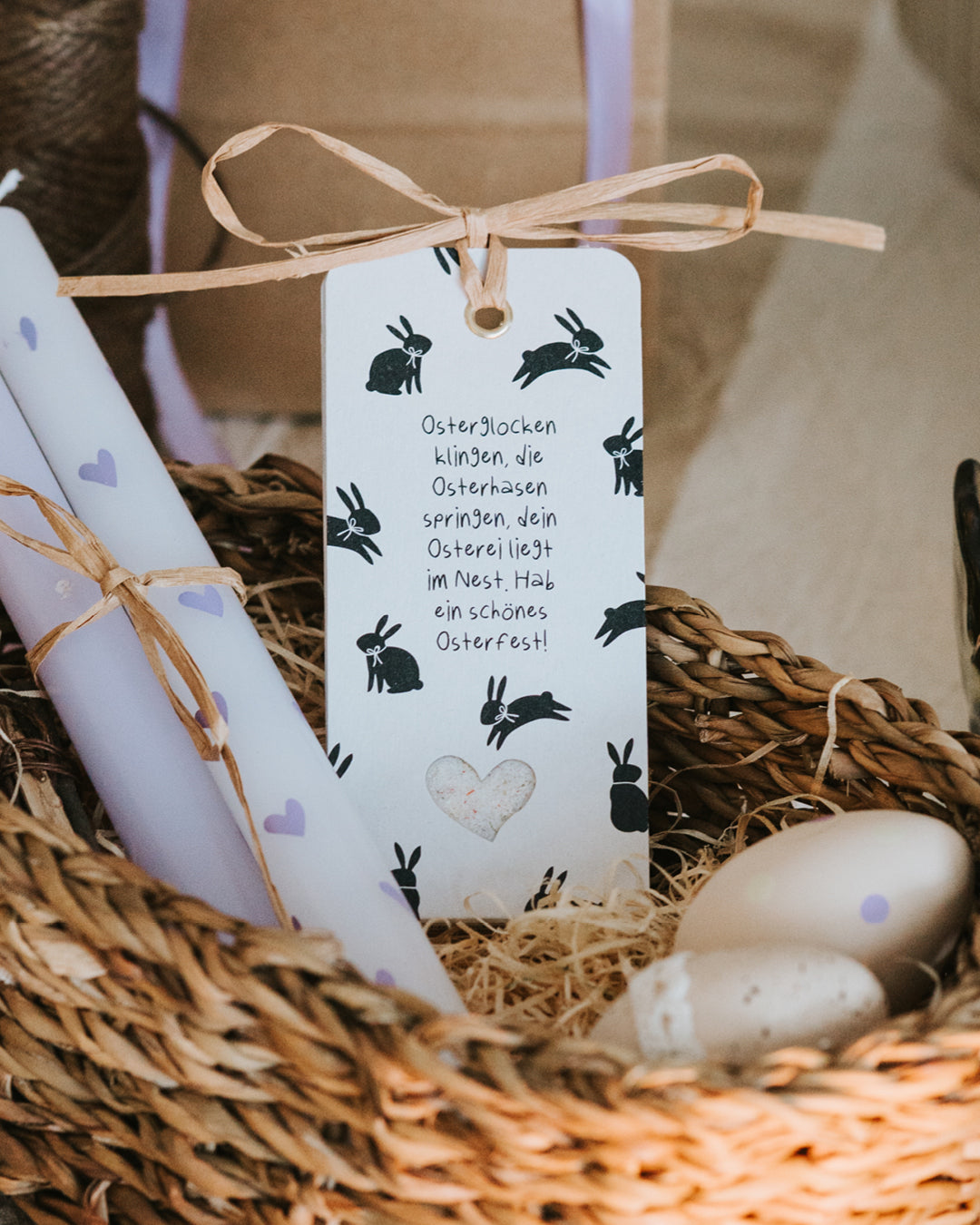 Dieser Geschenkanhänger ist für alle Ostermomente, in denen du jemandem Frühlingsfreude schenken willst. Ob als Geschenkidee Freundin, als liebevolles Mitbringsel zum Osterbrunch oder als kleine Geste fürs Osternest – er bringt Geschmack, Frühlingsduft und eine herzliche Botschaft. Viele unserer Kund:innen verschenken ihn als besondere Aufmerksamkeit zu Ostern, weil er zeigt: Hab ein schönes Osterfest. Mit seinem verspielten Design mit hüpfenden Hasen ist er ein perfektes nachhaltiges Geschenk für Frauen, die Wert auf Qualität und fröhliche Botschaften legen.